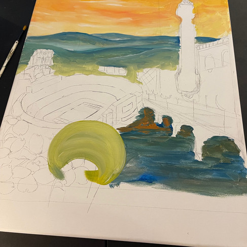 I compiled a vision board of inspiration photos found on Google to help get ideas flowing in my brain for a composition. Walmart provides the dimensions and key cultural components to include and it is my job as the artist to bring that to life. After Now Art provided the dimensions and cultural references, I had one week to complete the piece.